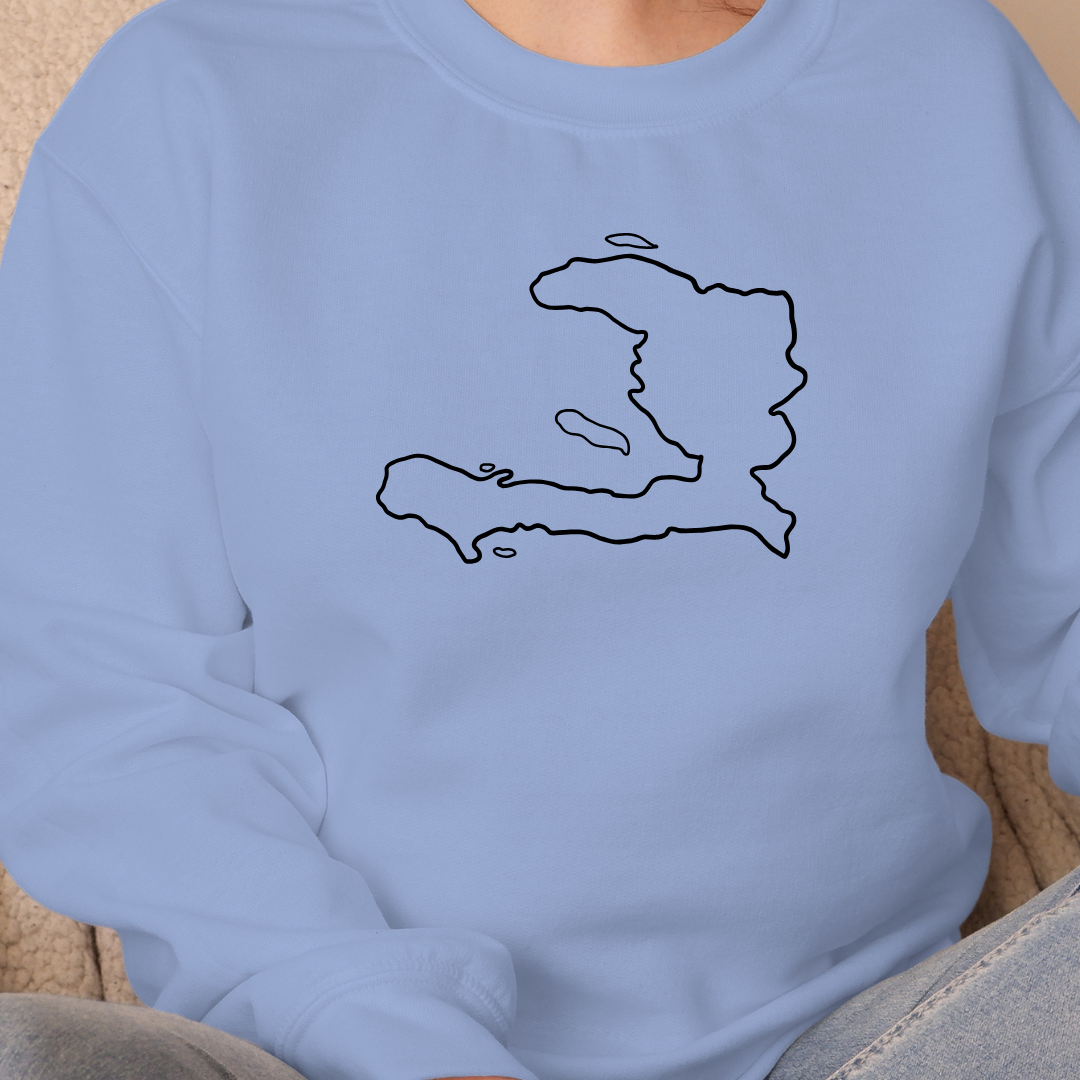Découvrez notre magnifique chandail orné d'un motif de la carte géographique d'Haïti, célébrant la beauté et la culture de ce pays. Il incarne un véritable hommage à cette île des Caraïbes, alliant style et fierté nationale dans un vêtement unique. Parfait pour afficher votre amour pour Haïti avec élégance.