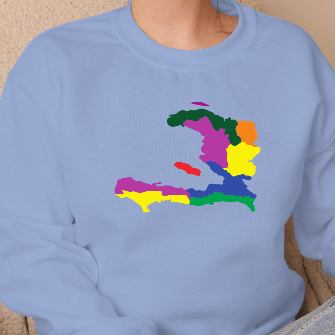 Découvrez notre magnifique chandail orné d'un motif de la carte géographique d'Haïti, célébrant la beauté et la culture de ce pays. Il incarne un véritable hommage à cette île des Caraïbes, alliant style et fierté nationale dans un vêtement unique. Parfait pour afficher votre amour pour Haïti avec élégance.