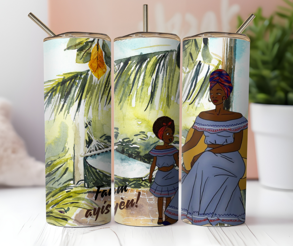 Découvrez la Gourde Manman e pitit, une bouteille de 20 oz parfaite pour les mamans et leurs enfants haitienne. Fabriquée par sublimation avec une touche haïtienne, elle garde vos boissons fraîches tout en ajoutant un élément culturel à votre quotidien. Restez hydraté avec style!