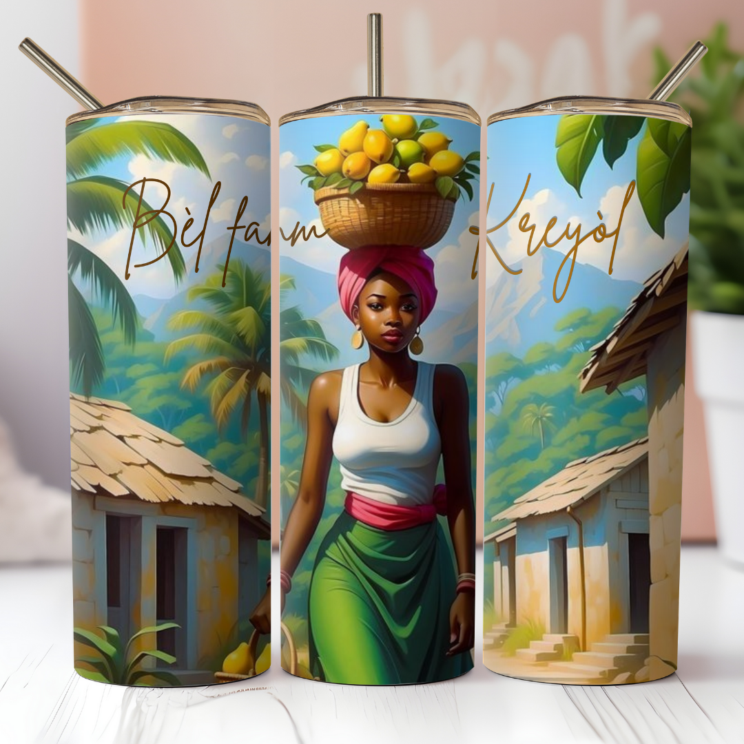 Découvrez notre GOUREDE BÈL FANM KREYÒL, inspiré par la beauté de la femme créole. Avec sa capacité de 20 oz, cette gourde vous accompagnera partout et vous rappellera la splendeur de la féminité. Son design unique saura captiver votre regard et vous inspirer à prendre soin de vous. Osez la beauté créole avec cette gourde!